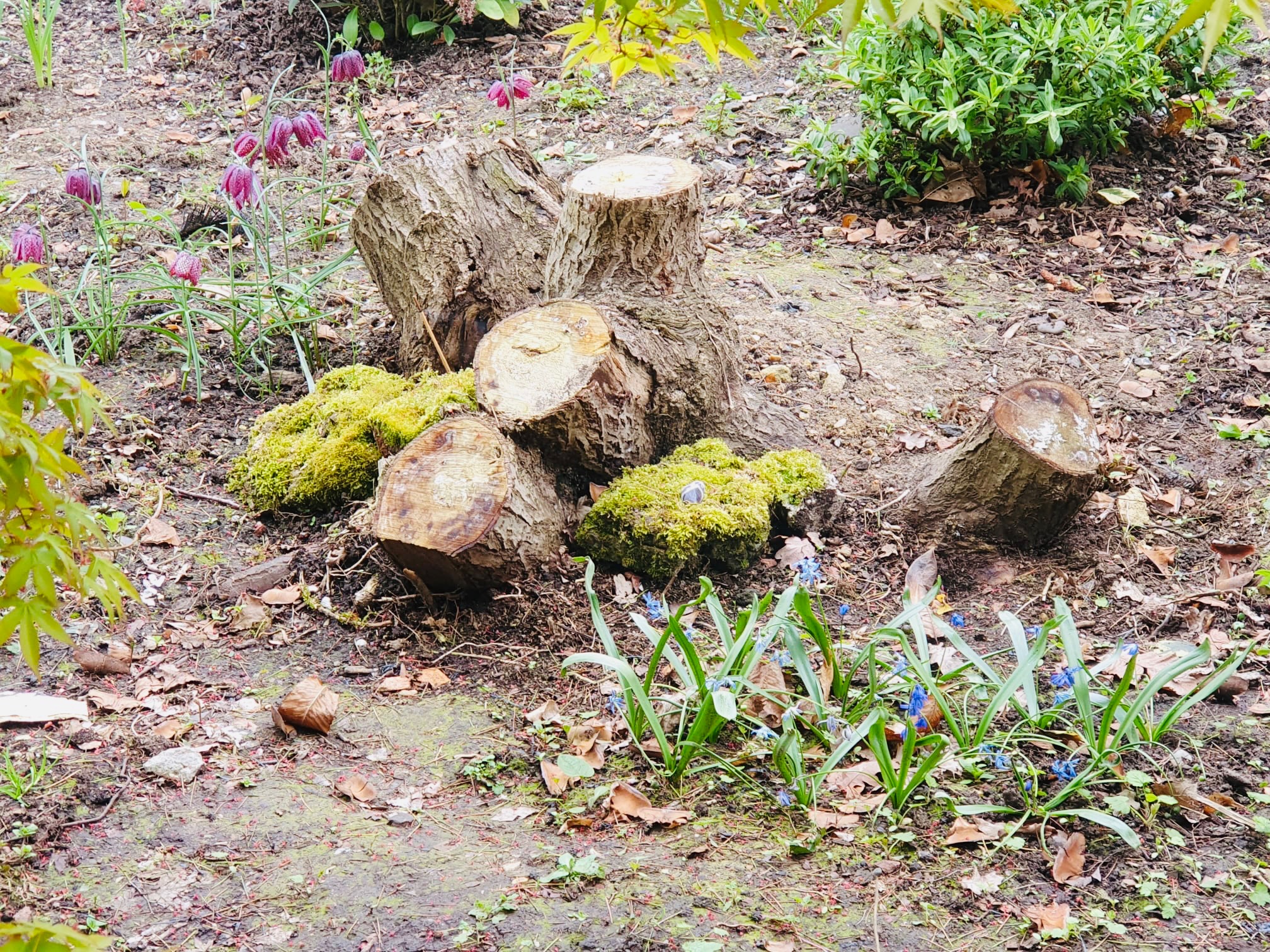 Jill had spotted two large stones which were covered in bright green moss and she felt they would be perfect in the little fairy garden area that she was working on. So she climbed down to get them. Having then placed them in a ‘special space’ she went about gardening and didn’t tell anybody what she had done.